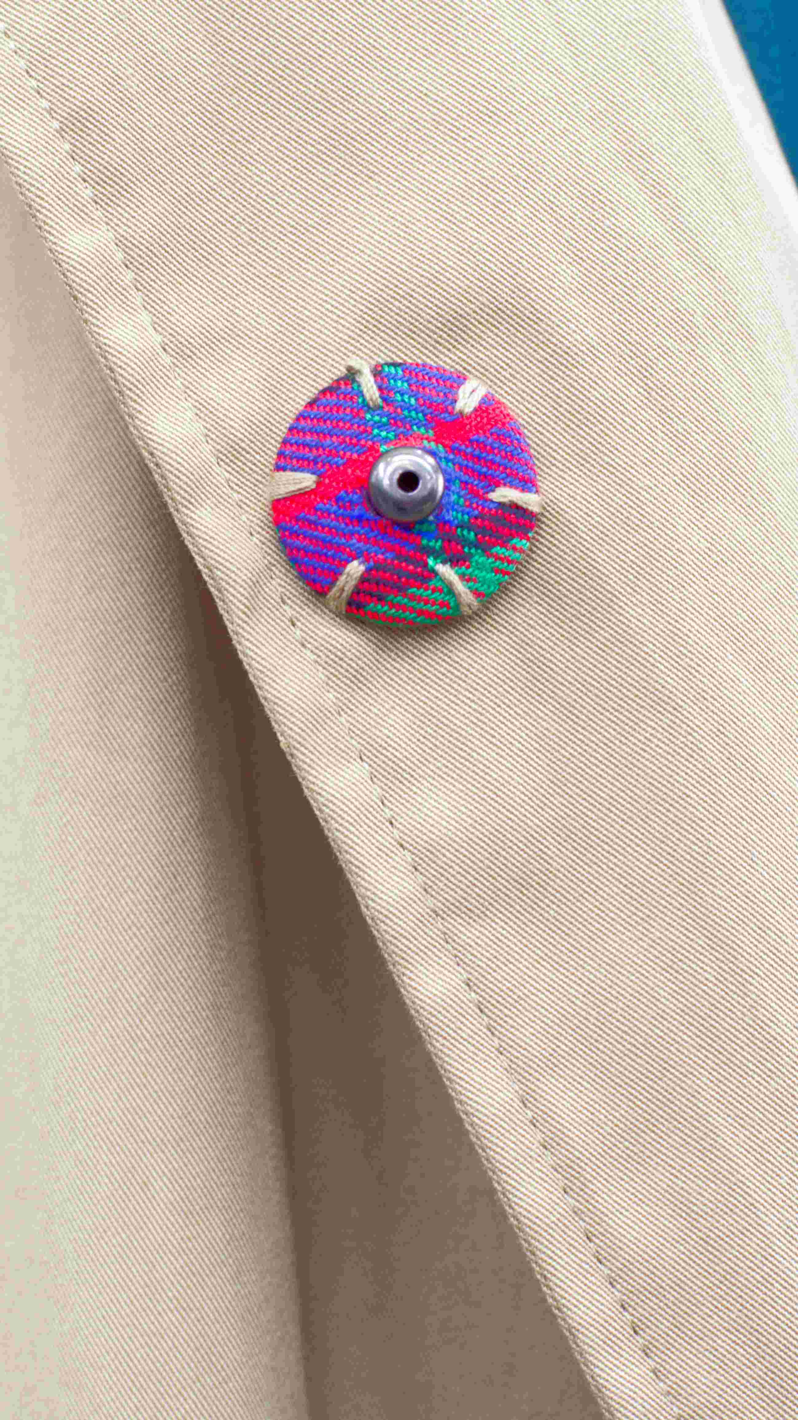 鮮やかな赤×緑のタータン柄が目を引くデザイン。